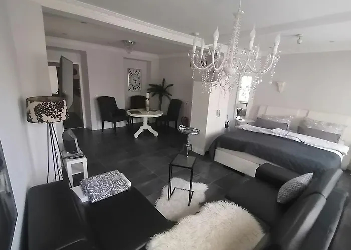 Erdgeschoss Ferienwohnung Dekoland oferuje pełnowymiarową kuchnię oraz jadalnię i jadalnię na świeżym powietrzu, gdzie można delektować się posiłkami. Ten apartament znajduje się w pobliżu od najbliższego przystanku autobusowego Waldstrasse. Dzięki luksusowym udogodnieniom, w tym tarasowi i dziedzińcu, goście mogą odpocząć i zrelaksować się. Apartament oferuje widok na dziedziniec z tarasu.